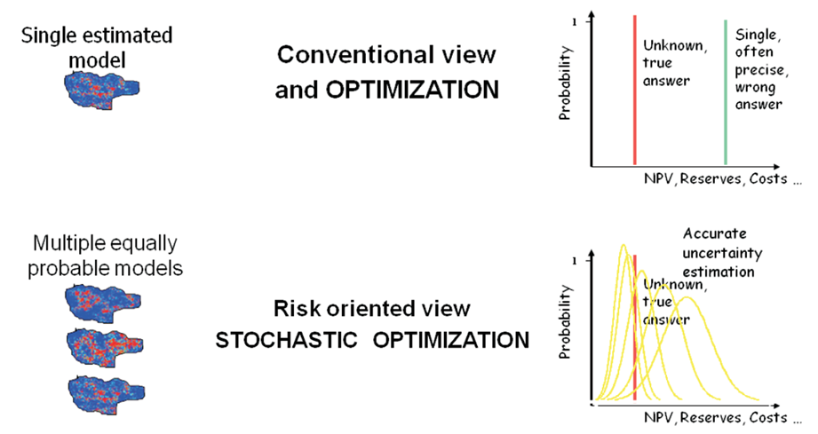 Devido ao alto risco que qualquer projeto minerário representa, a incerteza — e o consequente risco — deve ser quantificada para uma melhor tomada de decisões.